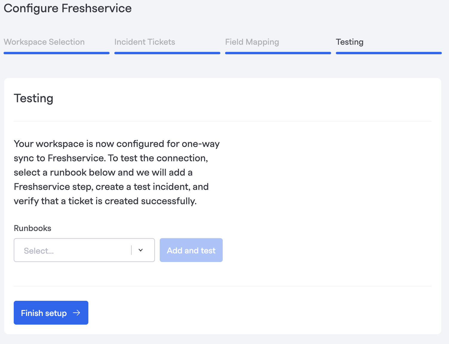 After the test is complete, click Finish setup.