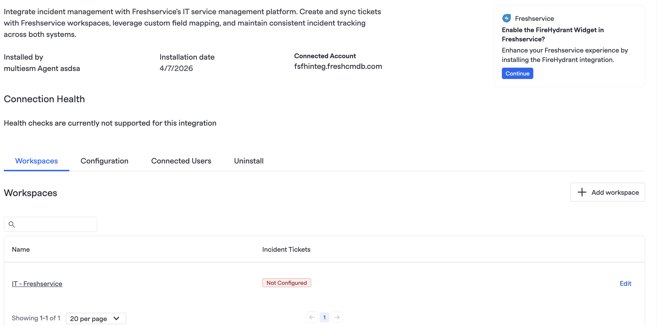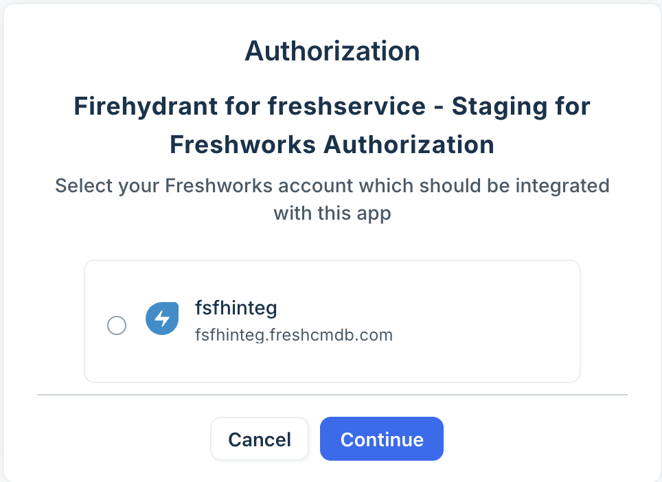 Select your Freshservice account that you want to connect with FireHydrant and click Connect.