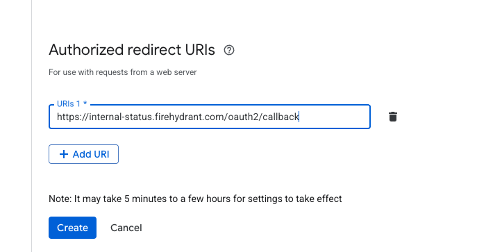 https://<statuspage hostname>/oauth2/callbackwhere<statuspage hostname>is the DNS name you chose when creating your status page. Then click Create.