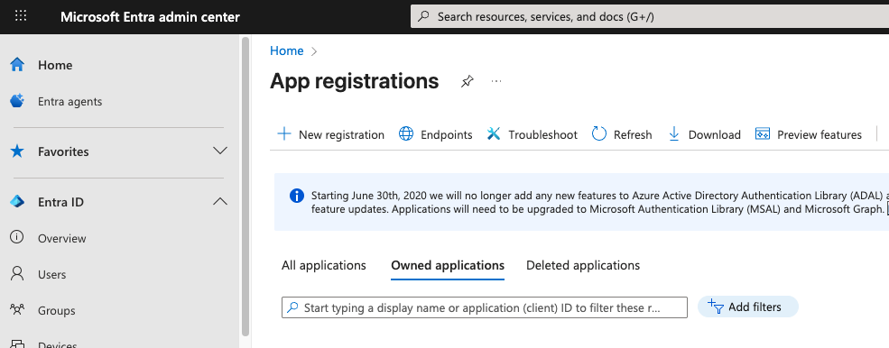 Reference documentation here: https://learn.microsoft.com/en-us/entra/identity-platform/quickstart-register-app#register-an-application