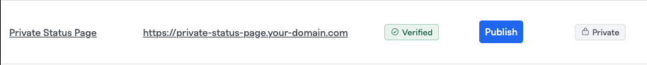 Once the Status Page is showing as verified on the Status Page overview, publish your new status page! When you attempt to access an SSO-locked status page, you should be redirected to your organization's SSO sign-on page.