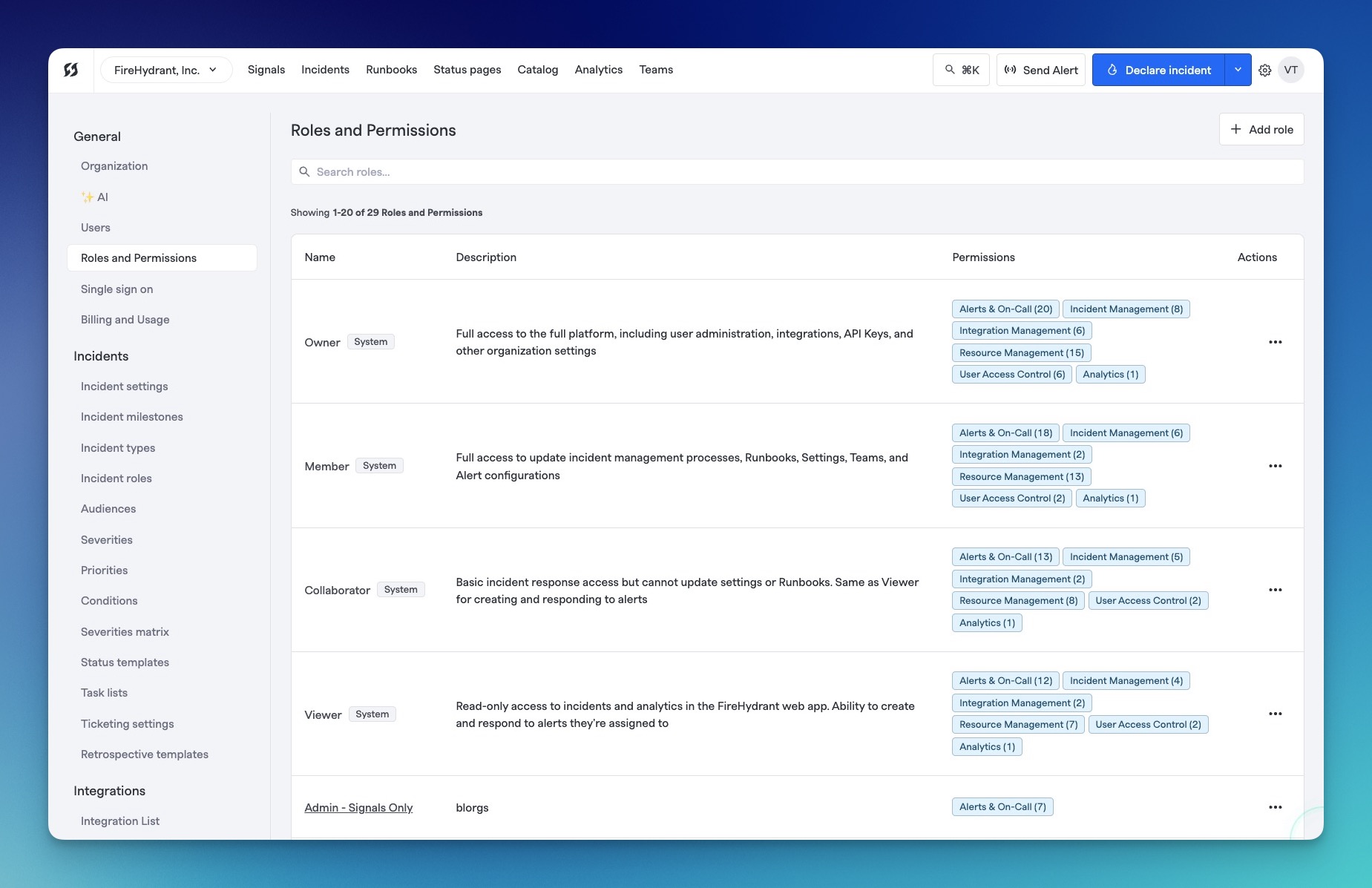 User roles in FireHydrant